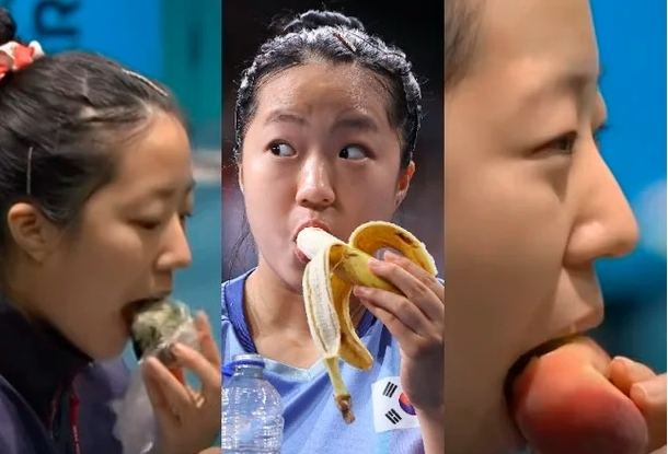 어제는 주먹밥, 오늘은 바나나…'삐약이' 신유빈의 먹방 화제