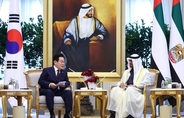 이재명 대통령은 18일(현지시간) 아랍에미리트연합국(UAE) 대통령궁에서 모하메드 빈 자이드 알 나흐얀 대통령과 만났다고 김남준 대변인이 밝혔다. 김 대변인은 "양 정상은 확대 및 단독 정상회담, MOU 교환식, 국빈 오찬 등을 통해 한국과 UAE 간 '특별 전략적 동반자 관계'의 불가역적이고 항구적인 발전 방안에 대해 심도 있는 의견을 나눴다"고 전했다. 먼저 이 대통령의 차량이 궁에 들어서자 UAE 측은 21발의 예포 발사, 낙타와 말 도열, 공군 비행시범단의 에어쇼, 어린이 환영단 등으로 이 대통령의 첫 국빈 방문을 성대하게 맞이했다. 특히 걸프 지역 결혼식에서 신부 친구들이 긴 머리카락을 늘어뜨려 추는 환영의 춤인 '칼리지 댄스'를 선보여, 국빈에 대한 최고 수준의 환대를 표했다. 이어지는 공식 환영식에는 UAE 왕실의 주요 인사와 연방 정부 각료들이 대거 참석해 환영의 분위기를 더했다. 이후 모하메드 대통령의 따뜻한 환대 속에 정상회담이 열렸다. 이 대통령은 회담에서 지난 6월 취임 이후 최초 양자 국빈 방문국이자 첫 중동 방문국으로 UAE를 방문하게 돼 뜻깊다는 소감을 밝히고, 지난 APEC 정상회의 때 UAE가 유일한 비회원 초청국으로 참석해 그