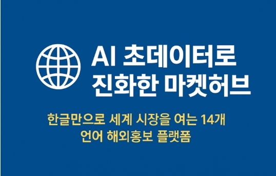 AI가 기업의 해외홍보를 대신하는 시대가 왔습니다. 14개 언어 해외홍보 플랫폼 마켓허브는 ‘한글만으로 해외홍보’가 가능한 유일한 B2B+초데이터 플랫폼입니다.